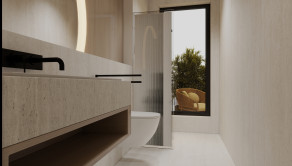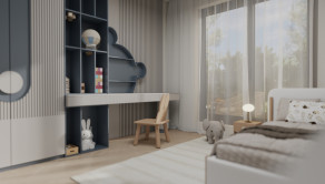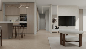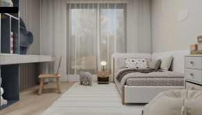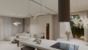 Byt je dispozične rozdelený na dve nočné krídla so 4 izbami, 2 kúpelňami a 2 toaletami a jednu dennú časť v ktorej sa nachádza priestranná obývacia izba s kuchyňou a jedálňou o výmere 52m2. Obývacia izba má dva vstupy na priestrannú terasu.