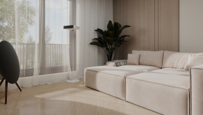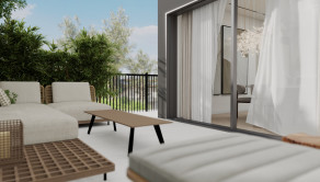 Terasa je prepojená takmer po celom obvode bytu, čo umožňuje vstup na terasu z každej izby.