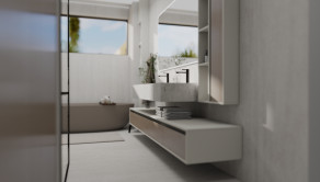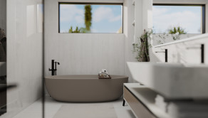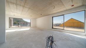 A besonderer Vorteil is da erhöhte, designt Betonboden- bzw. Betondeckenhöhe vo 270 cm. Ois Zimmer ham großflächige Aluminiumfenster, des sorgt für vui Licht. Die Eingangstür is vo ADLO und is 230 cm hoch.