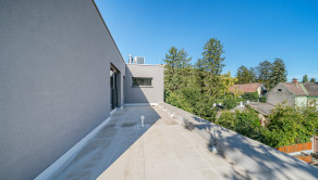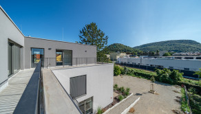 Úžitková plocha bytu je 145m2, plocha terasy je 99m2 s výhľadom na hrad a kopec Braunsberg.
