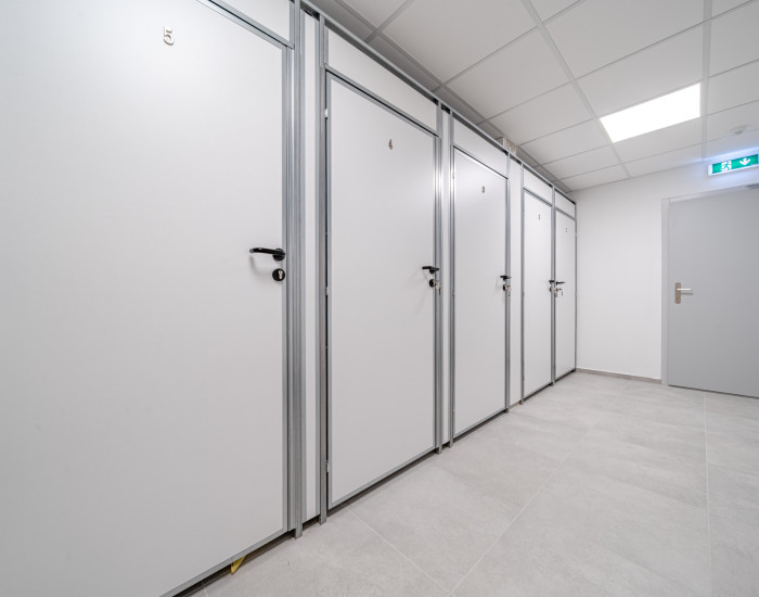 Na prízemí uzamykateľná miestnosť pre bicykle, kočíky a pivničné kobky