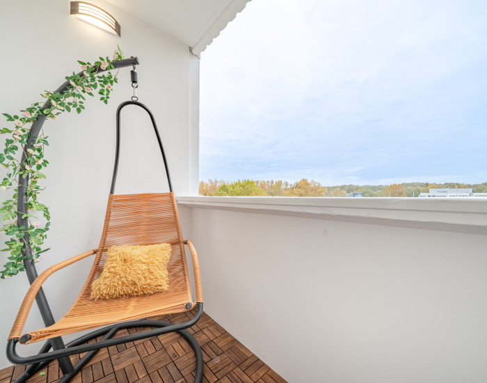 APARTMENT: The apartment has a total area of 83.65 m²+ balcony, including a 1.1 m² cellar. It is located on the 5th floor of 8 in an insulated apartment building with an elevator. The apartment underwent a complete renovation in 2025, including replacement of electrical wiring, windows, and flooring. It is oriented to the northeast and southwest, providing plenty of natural light throughout the day.