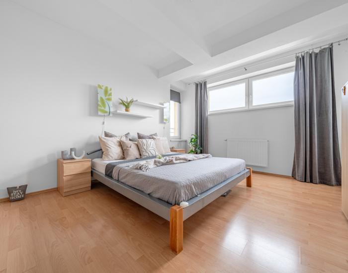 DISPOZÍCIA: Vstupná chodba, obývacia izba prepojená s kuchyňou, čo vytvára veľkorysý otvorený priestor - s výstupom na balkón a výhľadom na Rakúsko, spálňa s výhľadom na Bratislavský hrad, hosťovská izba, kúpeľňa s vaňou aj so sprchovacím kútom, samostatná toaleta.