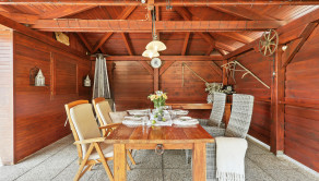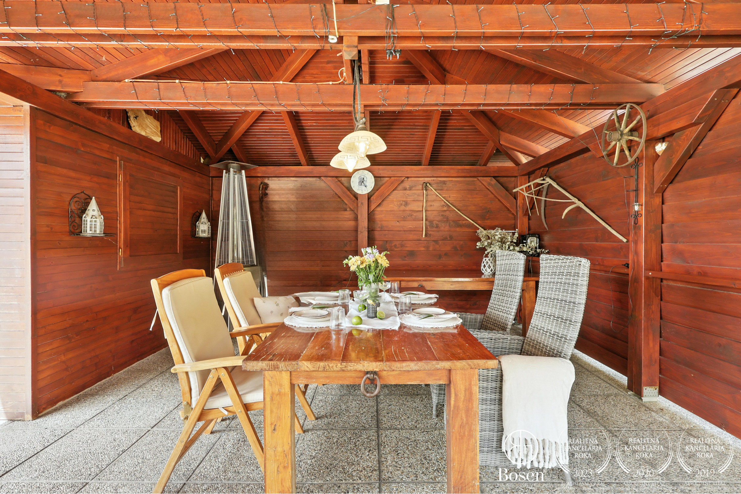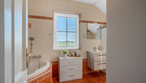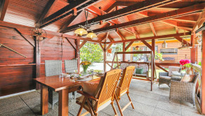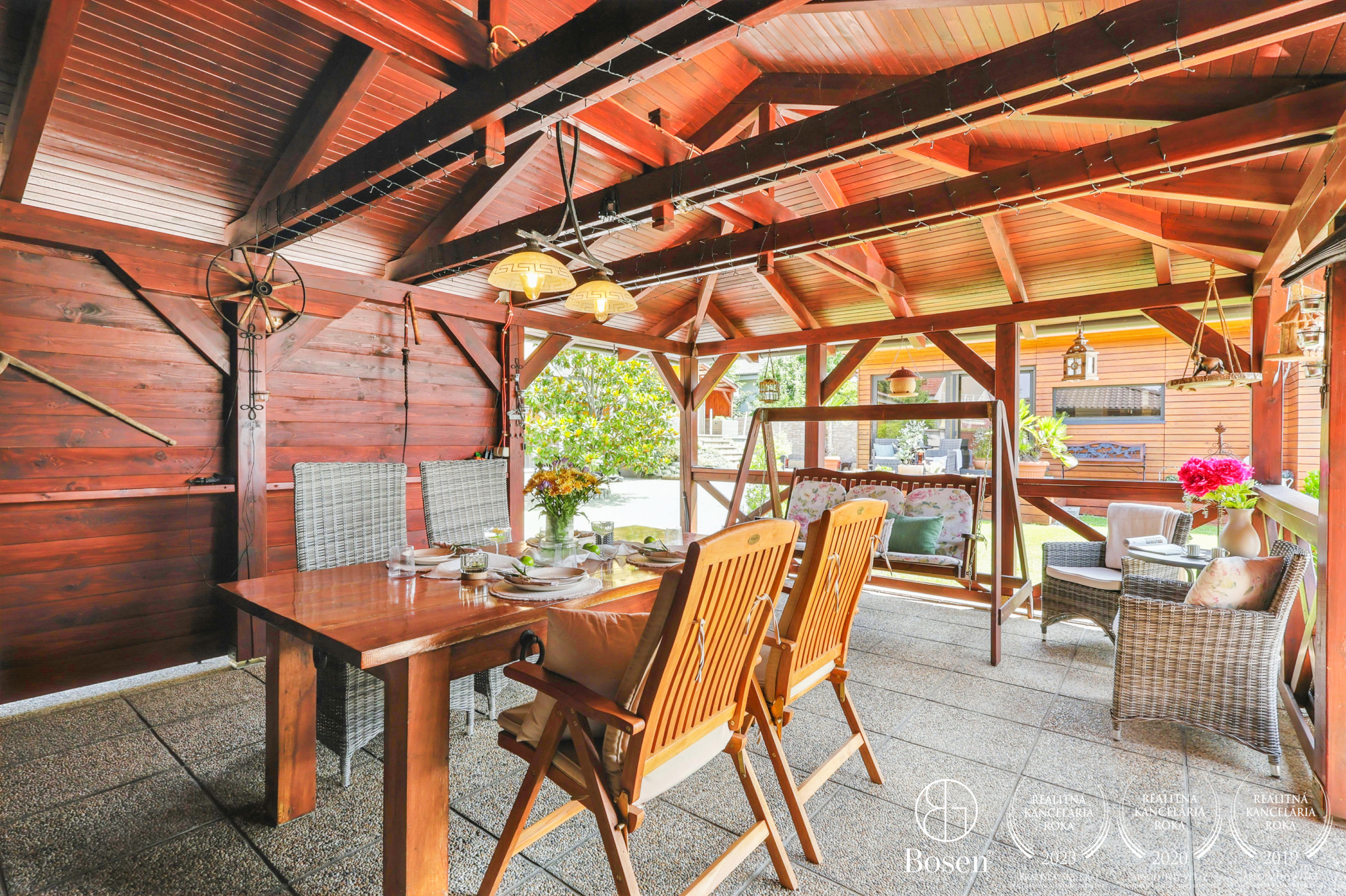 LAND: The family house is built on a plot with a total area of 679 m². The built-up area of the house is 248.58 m2. On the land behind the family house there is an air-conditioned summer house (37.4 m2), which is fully furnished (kitchen, cooling box, living room, bathroom) and a covered gazebo (31 m2) with a barbecue. The garden faces northwest. The family house is surrounded by a concrete fence. A paved driveway leads to the family house.