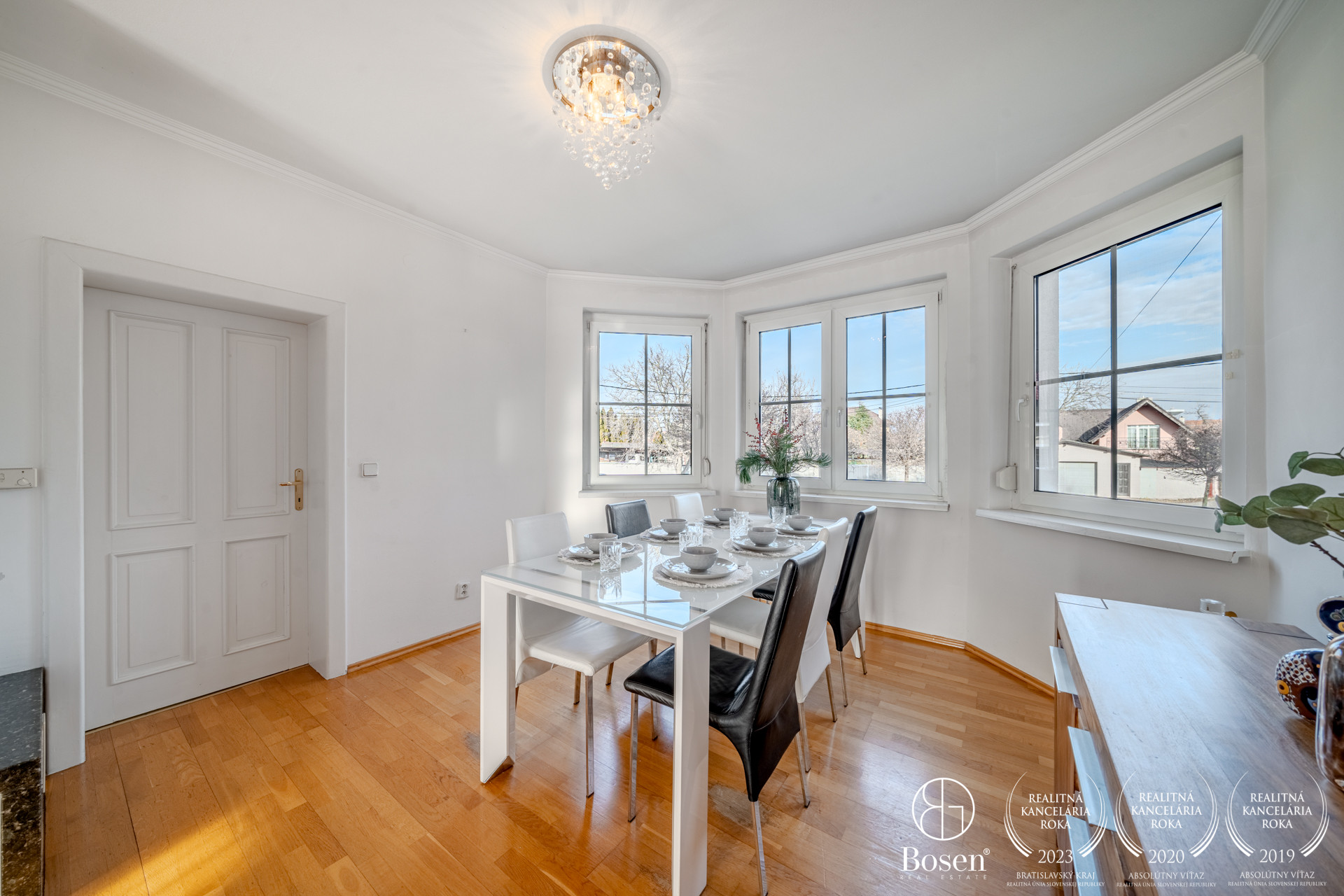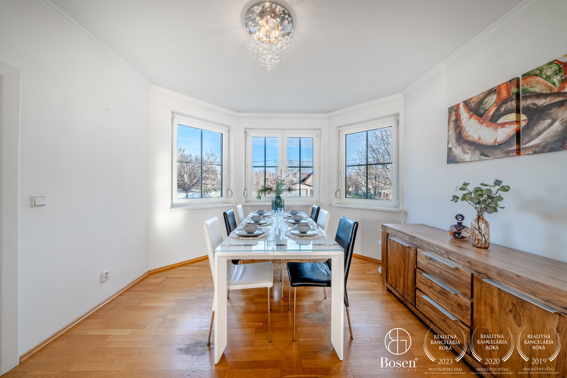 Bosen Group exclusively offers for sale a two-story detached 5-room family house with a basement and a double garage in a quiet part of Jarovce.