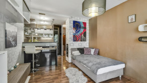 BYT: Byt je tichý s orientáciou na východ. Je situovaný na 3. poschodí zo 6 a samozrejmosťou je aj výťah. Byt (26 m2) pozostáva zo vstupnej chodby, z ktorej sa následne vchádza do kúpeľne so sprchovým kútom a WC, cez vstupnú chodbu, ktorá je vybavená vstavanými skriňami sa dostanete do obývacej izby spojenej s kuchynskou časťou. Z obývacej izby sa prechádza na balkón (5 m2).