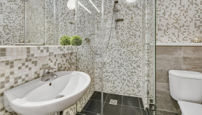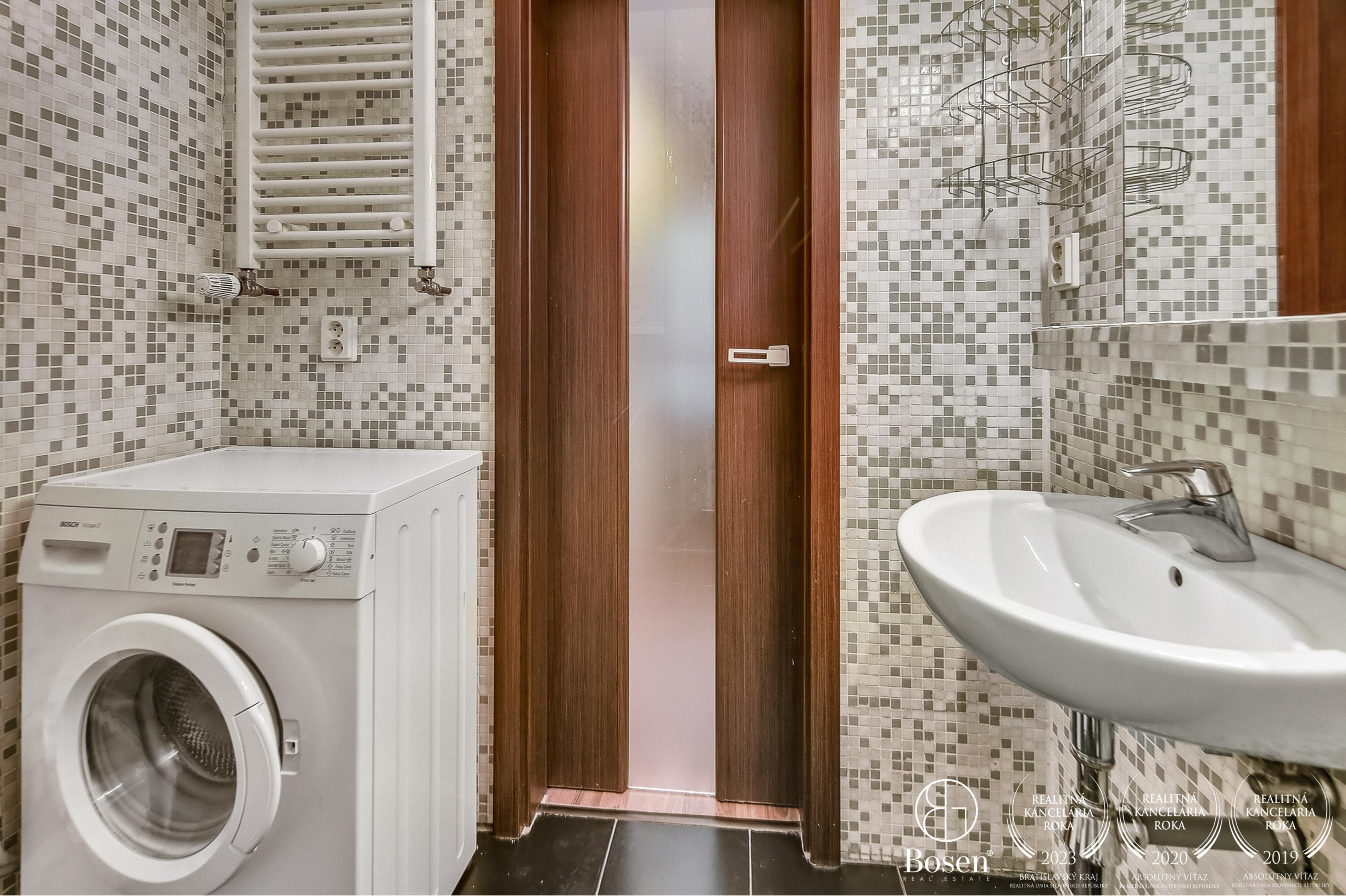 WC je spojené s kúpeľňou v ktorej sa nachádza sprchový kút a práčka.