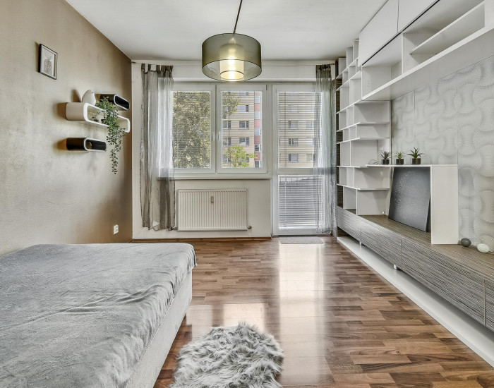 ZARIADENIE: Byt prenajímame kompletne zariadený. Zariadený je ako vidíte na fotografiách. V byte je položená plávajúca podlaha a o väčší komfort sa postarajú plastové okná s internými žalúziami. Na balkónové dvere sú nainštalované sieťky proti hmyzu. Kuchynská linka je vybavená elektrickou rúrou, elektrickou varnou doskou, digestorom s odvetrávaním, chladničkou s mrazničkou, umývačkou riadu.