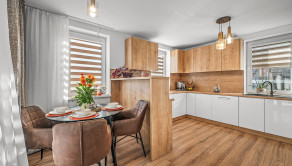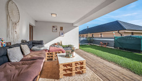 Na prízemí sa nachádza priestranná kuchyňa s jedálňou a obývacou izbou s priamym výstupom na terasu – ideálne miesto pre rodinné posedenia a oddych.