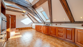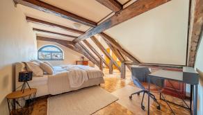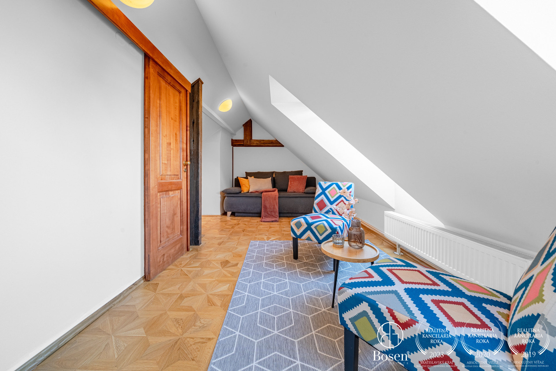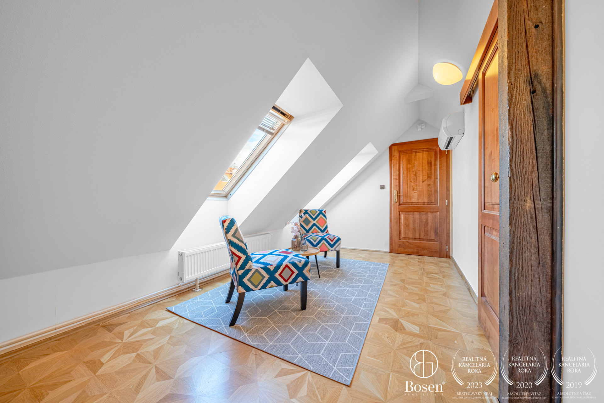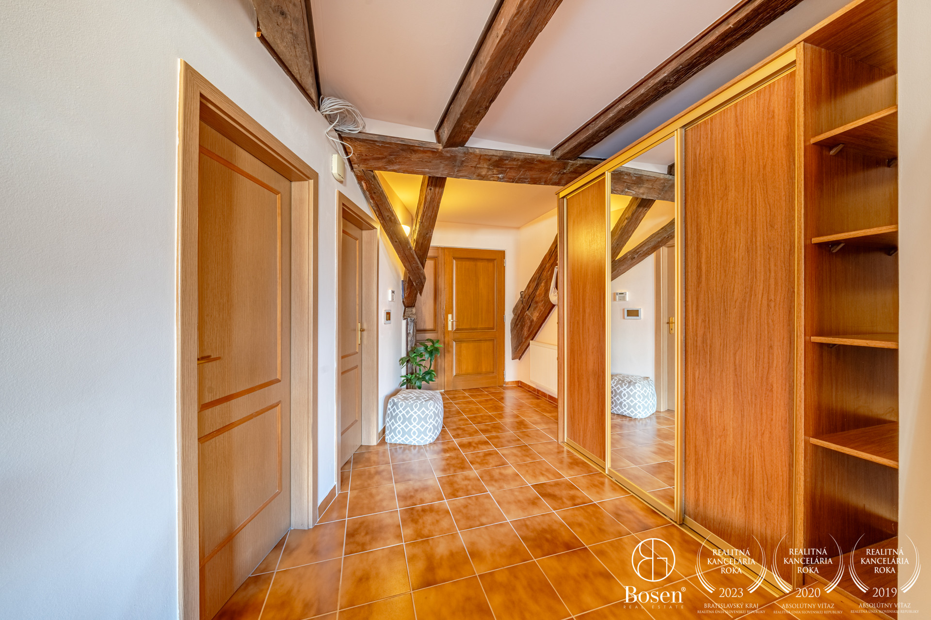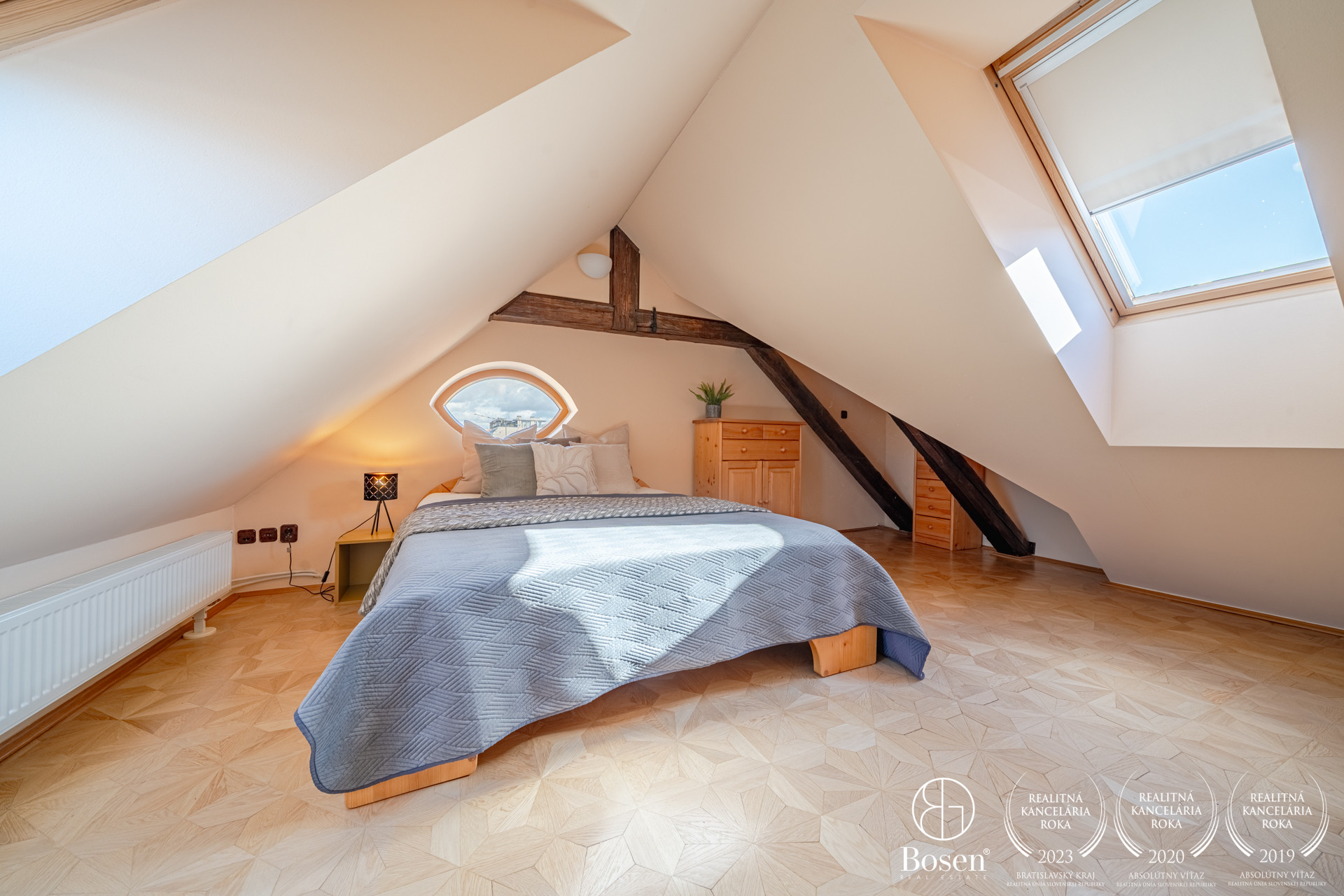 Bosen Group Real Estate Agency exclusively offers for sale a spacious 5-bedroom penthouse apartment with a unique atmosphere, located on the 4th floor of the Esterházy Palace, one of the most significant baroque buildings in the historical centre of Bratislava. The property stands out for its combination of historical character, preserved original beams and a generous total area of 228 m², creating a truly exceptional living space in the heart of the Old Town.