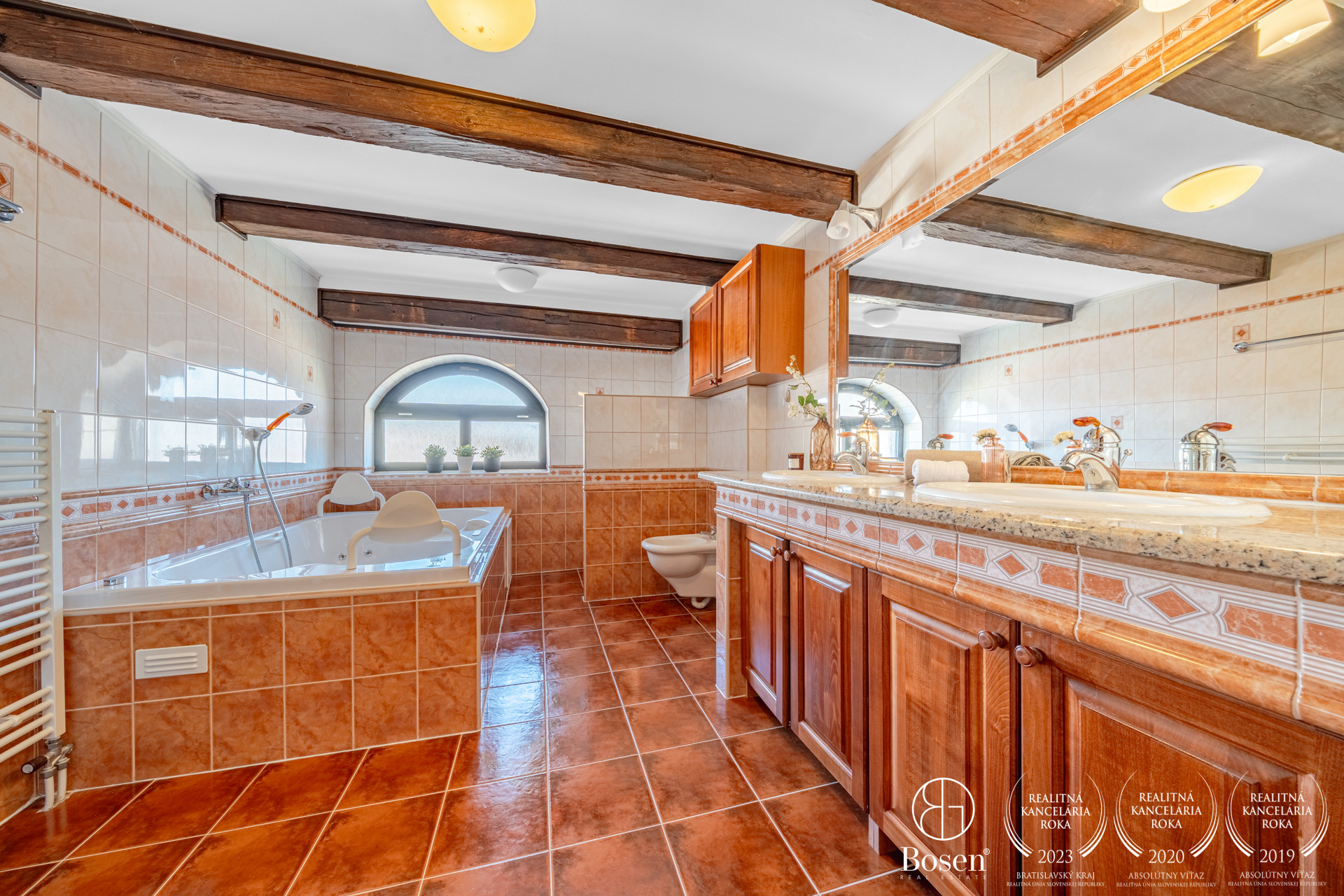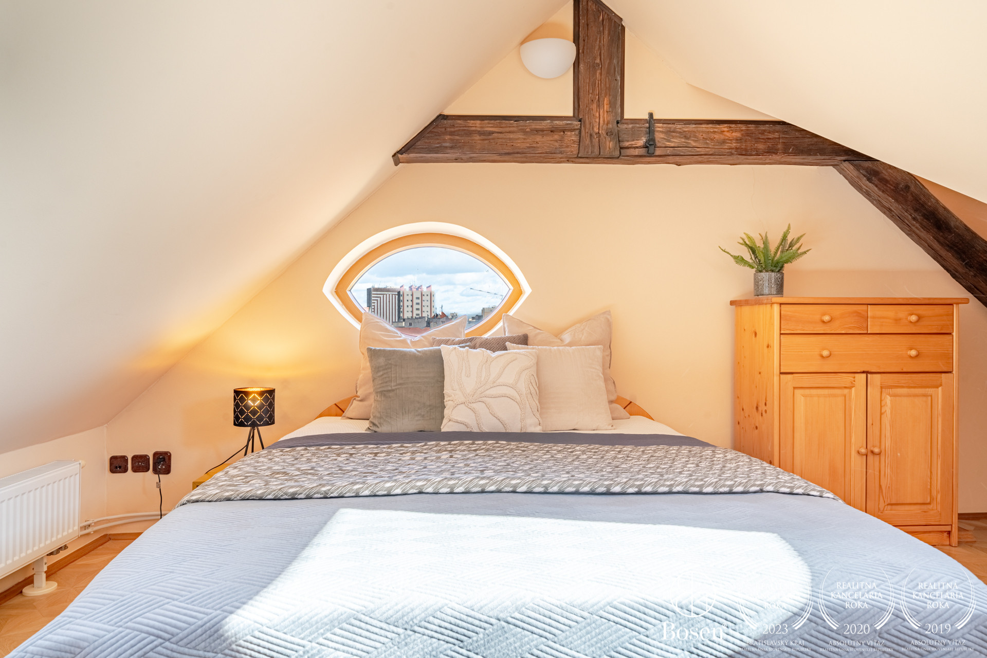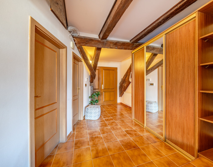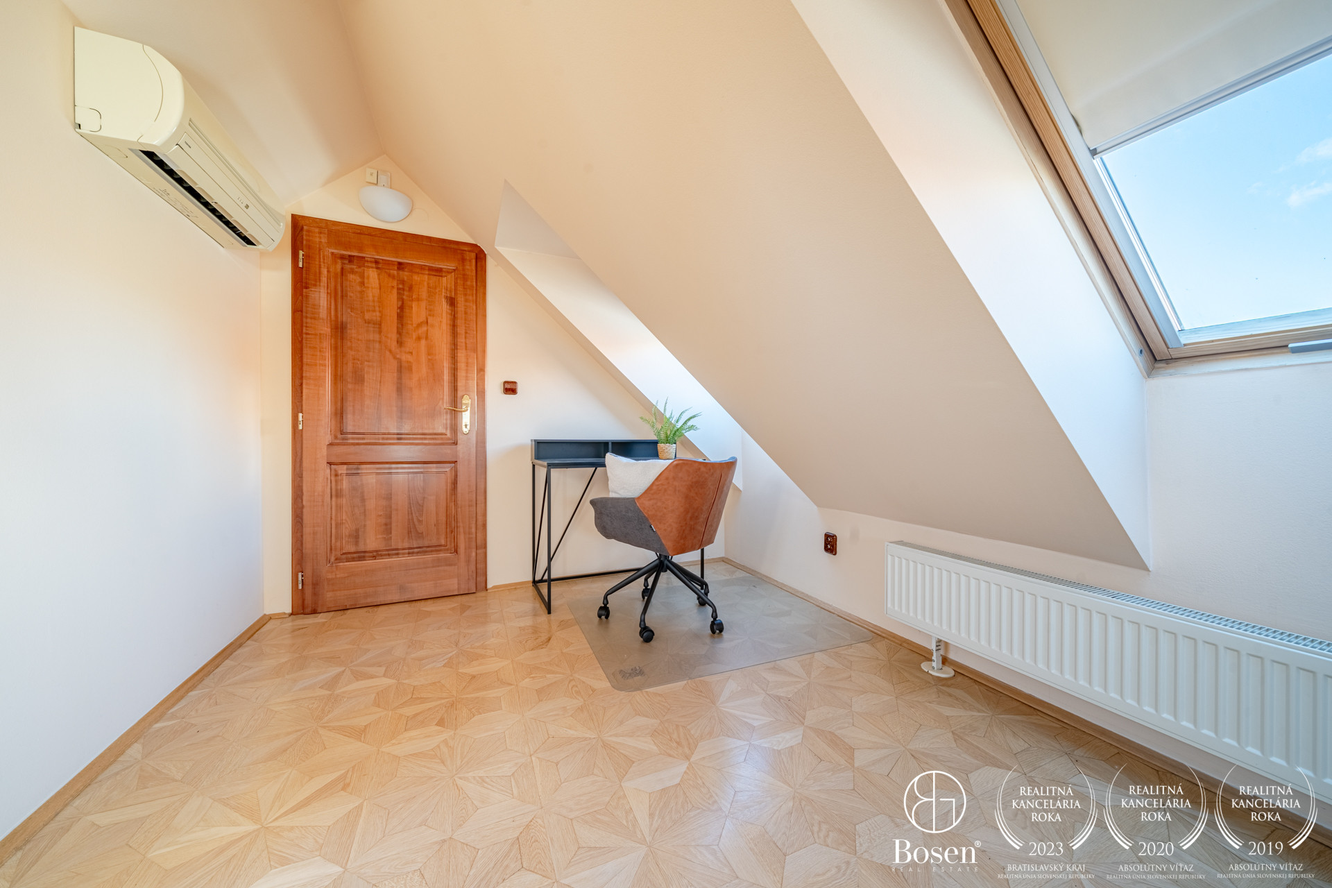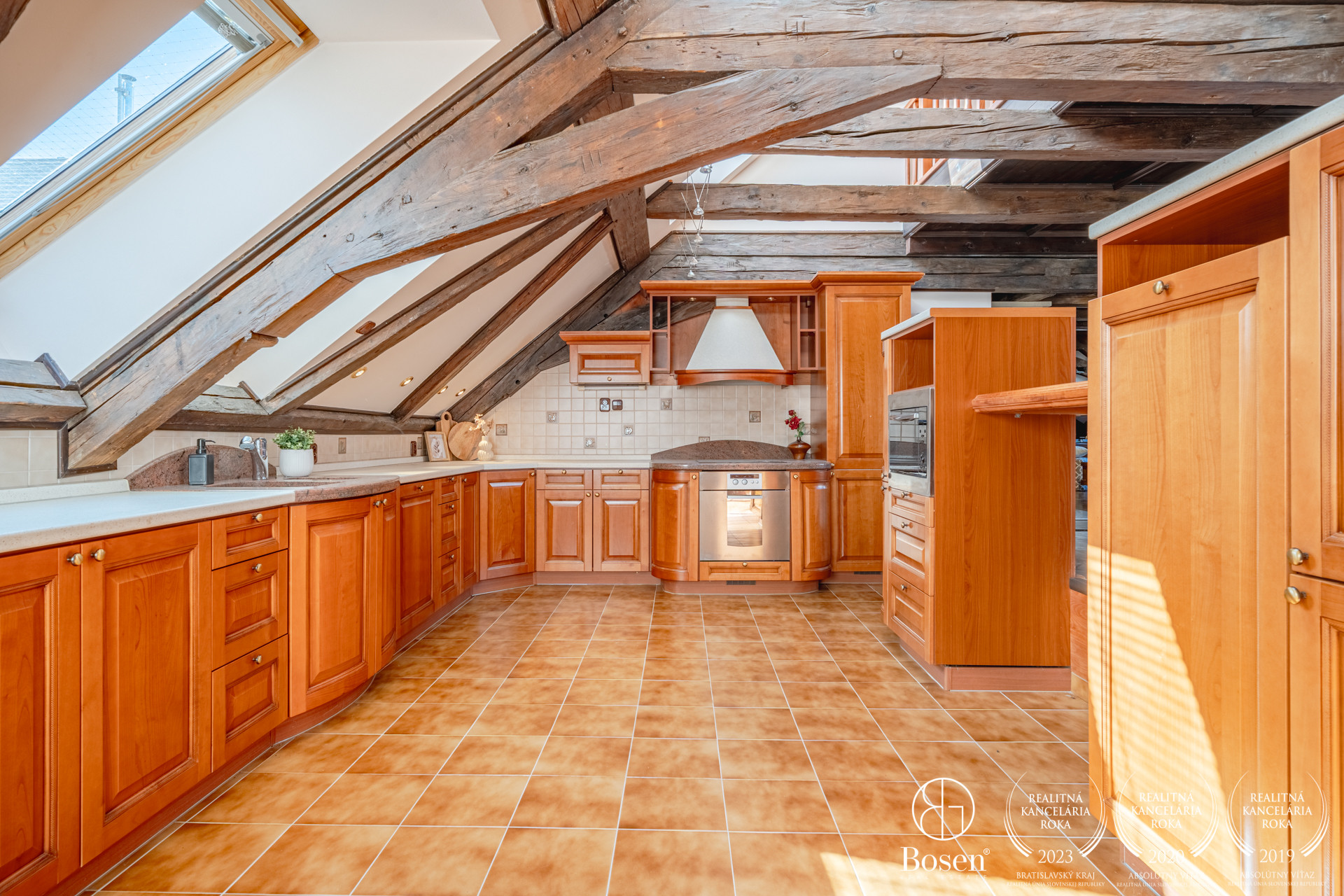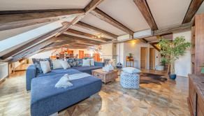 Bosen Group Real Estate Agency exclusively offers for sale a spacious 5-bedroom penthouse apartment with a unique atmosphere, located on the 4th floor of the Esterházy Palace, one of the most significant baroque buildings in the historical centre of Bratislava. The property stands out for its combination of historical character, preserved original beams and a generous total area of 228 m², creating a truly exceptional living space in the heart of the Old Town.