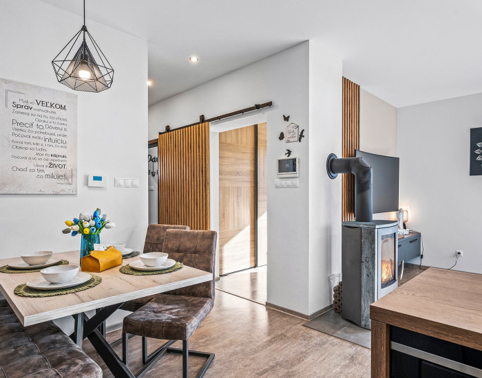 Domček je vkusne a moderne zariadený, stačí sa len nasťahovať.