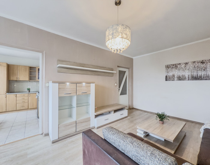 DISPOZÍCIA: Prakticky riešená dispozícia bytu umožní mať dennú časť čiastočne oddelenú od nočnej. Denná časť je orientovaná na S/Z, kde sa nachádza obývacia izba čiastočne prepojená s jedálňou a kuchyňou. Z priestrannej predsiene je ďalej prístup do detskej izby a spálne s loggiou orientovanou na J/V. Okrem toho je z predsiene prístup do kúpeľne a samostatnej toalety. K prislúcha murovaná špajza na medziposchodí bytového domu a priestranná murovaná pivnica v suteréne.