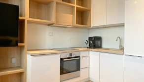 ZARIADENIE: Byt sa prenajíma kompletne zariadený. Kuchynská linka na mieru je vybavená vstavanou elektrickou varnou doskou, rúrou, digestorom, chladničkou s mrazničkou.