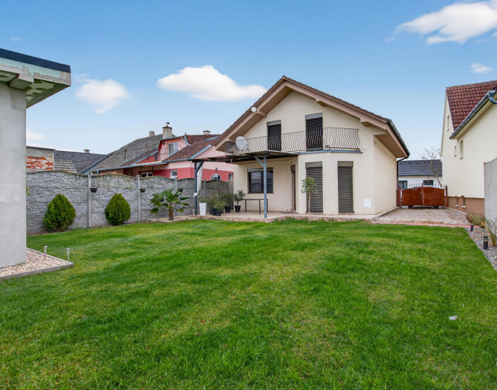 Rodinný dom: nehnuteľnosť s dvomi nadzemnými podlažiami, kolaudovaný v roku 2008. Úžitková plocha domu je 160 m2. Rodinný dom je postavený z kvalitných materiálov. Obvodové murivo a vnútorné priečky - YTONG, strešná krytina - betónová škridla BRAMAC, zateplenie rodinného domu - polystyrénom 5 cm, klimatizácia, vonkajšie elektrické žalúzie, teplovodné podlahové kúrenie v kombinácii s radiátormi, plynový kotol PROTHERM so zásobníkom na teplú vodu, drevené euro okná, krb s prieduchmi, na podkroví je úložný priestor. Dom je napojený na tieto inžinierske siete: voda, elektrina, plyn a kanalizácia.
