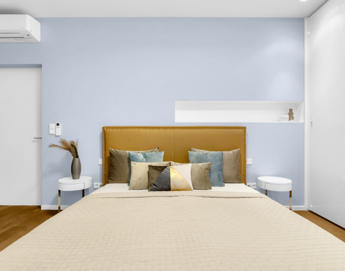 The interior exudes harmony, with attention to detail and aesthetics – a combination of warm tones, light, and quality materials creates the feeling of modern yet cozy urban living.