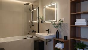 ZARIADENIE: Byt sa predáva v štandarde a disponuje: bezpečnostnými vstupnými dverami, videovrátnikom, drevenými podlahami, obkladmi a dlažbami v kúpeľni/toalete, komplet sanitou, hliníkovými oknami s izolačným trojskom, stropným chladením, podlahovým kúrením, hliníkovými exteriérovými žalúziami. Kúpou tiež získate bonus na dozariadenie vo výške 18.000 EUR.
