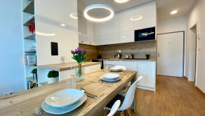 ZARIADENIE: Byt sa prenajíma kompletne zariadený vrátane kuchynského riadu. Byt je zariadený nábytkom na mieru - predsieň s úložným priestorom, vešiaková zostava, kuchynská linka so vstavanými spotrebičmi ( umývačka riadu, indukčná varná doska, digestor, elektrická rúra, chladnička s mrazničkou, mikrovlnná rúra), rolldorová skriňa v spálni, komoda, pracovný stolík, manželská posteľ s úložným priestorom, jedálenský stôl so stoličkami, rozkladacia sedačka, TV, práčka so sušičkou, exteriérové žalúzie. Byt je vybavený klimatizáciou.