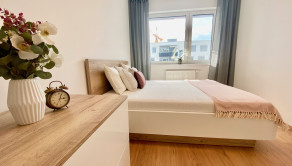 Bosen Group Vám ponúka na prenájom slnečný 2 izbový byt s loggiou a garážovým parkovacím miestom na ulici Hraničná, Bratislava – mestská časť Ružinov v projekte Nuppu.