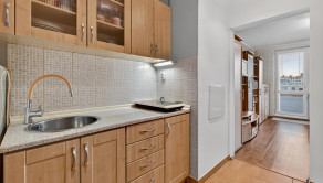 DISPOZÍCIA: Chodba s kuchynským kútom, z ktorej je vstup do kúpeľne, WC a izby. Z izby je vstup na loggiu.