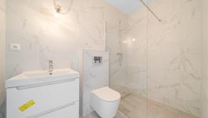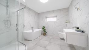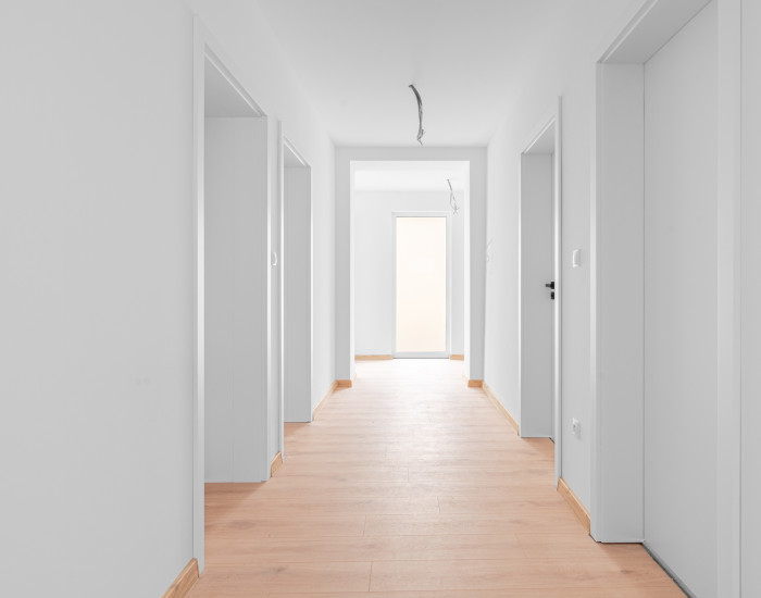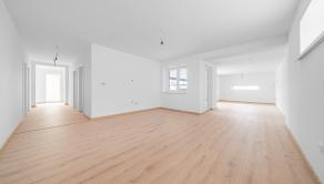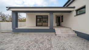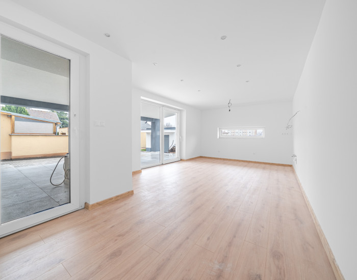 Dennú časť tvorí veľkorysý otvorený priestor kuchyne, jedálne a obývacej izby s priamym výstupom na terasu, čo zabezpečuje plynulé prepojenie interiéru s exteriérom. Nočná časť ponúka tri samostatné izby a dve kúpeľne – hlavná kúpeľňa je priestranná a vybavená sprchovým kútom aj vaňou, zatiaľ čo druhá kúpeľňa je súčasťou rodičovskej spálne, ktorá zároveň disponuje vlastným šatníkom. Súčasťou dispozície je aj technická miestnosť, ktorá poskytuje praktický priestor pre technické vybavenie domu a ďalšie úložné potreby.