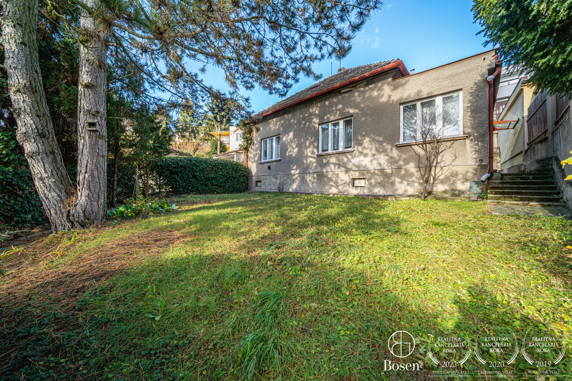 POZEMOK: Pozemok má celkovú výmeru 403 m². Je mierne svahovitý, nachádzajú sa na ňom staršie stromy a poskytuje pokojné súkromie. Zo záhrady aj z domu sa otvára priame vizuálne prepojenie na Bratislavský hrad, čo dodáva nehnuteľnosti jedinečný charakter.