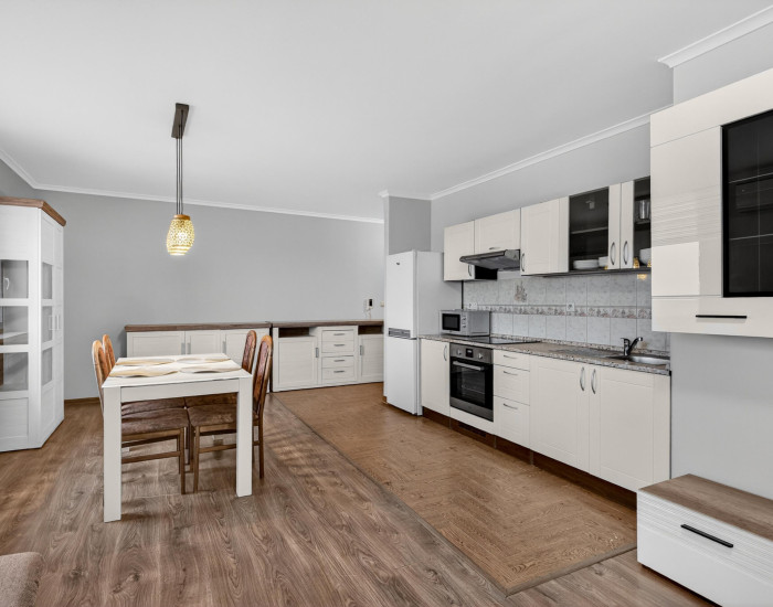 BYT: celková výmera bytu je 70 m² vrátane príslušenstva. Byt sa nachádza na prvom poschodí domu bez výťahu. Dispozičné riešenie bytu je nasledovné: vstupná chodba, z ktorej je vpravo prístup do obývačky spoločnej s kuchyňou, vľavo do spálne a ku kúpeľni s WC. Byt je veľkometrážny, má veľa svetla.
