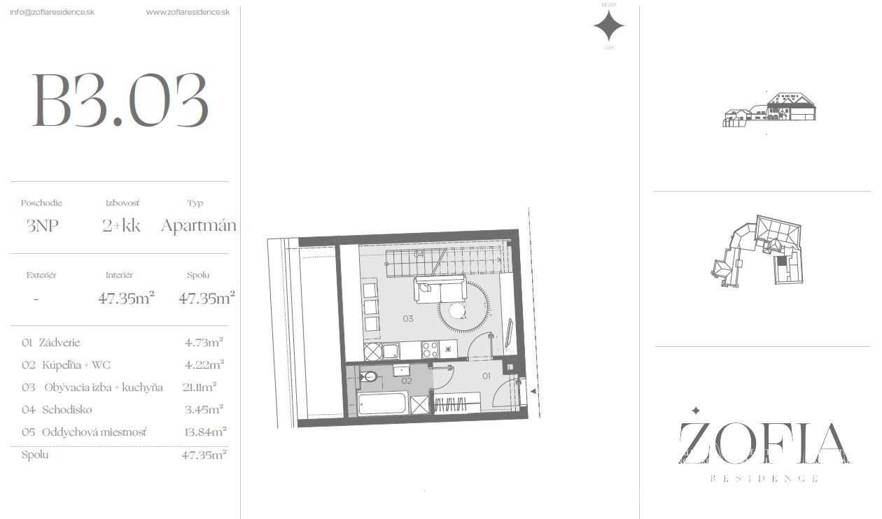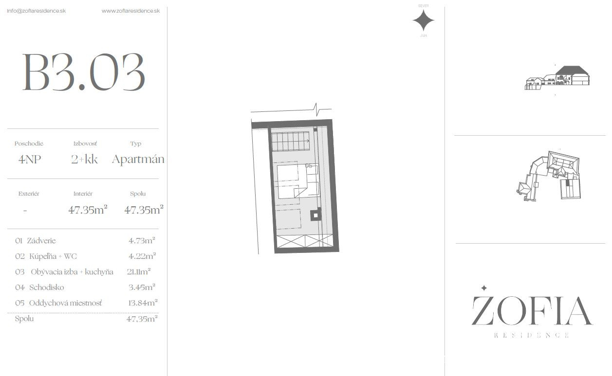 Bosen Group ponúka exkluzívne na predaj jedinečný 2 izbový mezonetový apartmán B3.03 v prestížnom projekte Žofia Residence, ktorý vznikol kompletnou rekonštrukciou historického kaštieľa sv. Žofie v Ružomberku. Projekt spája noblesu renesančnej architektúry s moderným komfortom bývania a ponúka atmosféru, ktorá je na trhu výnimočná a mimoriadne žiadaná.