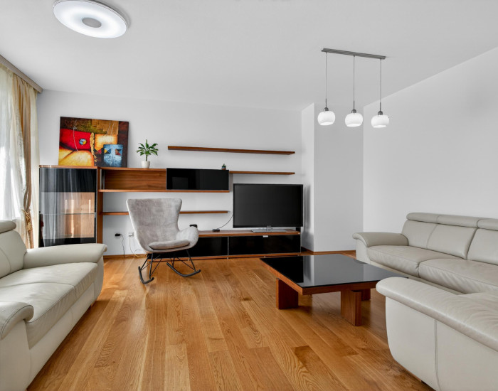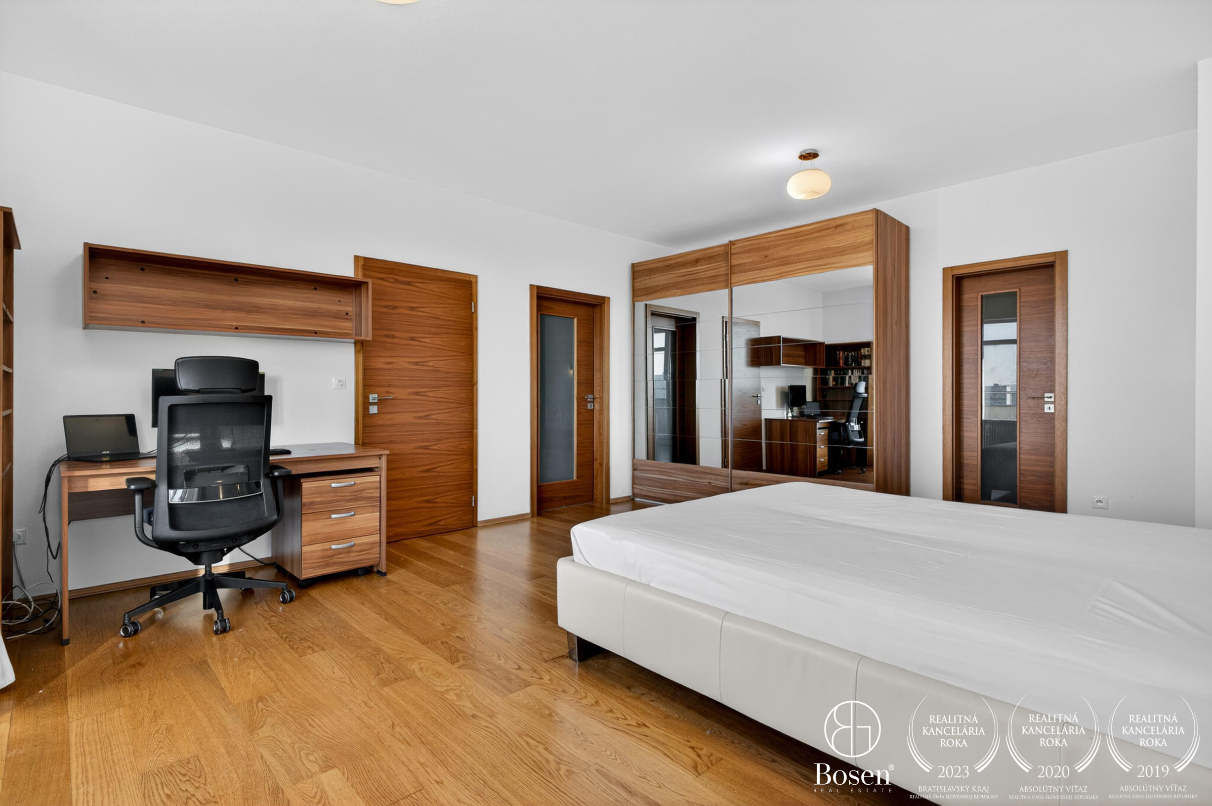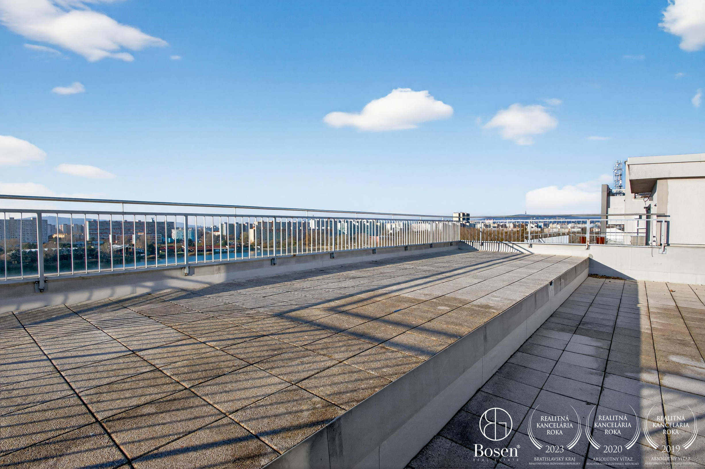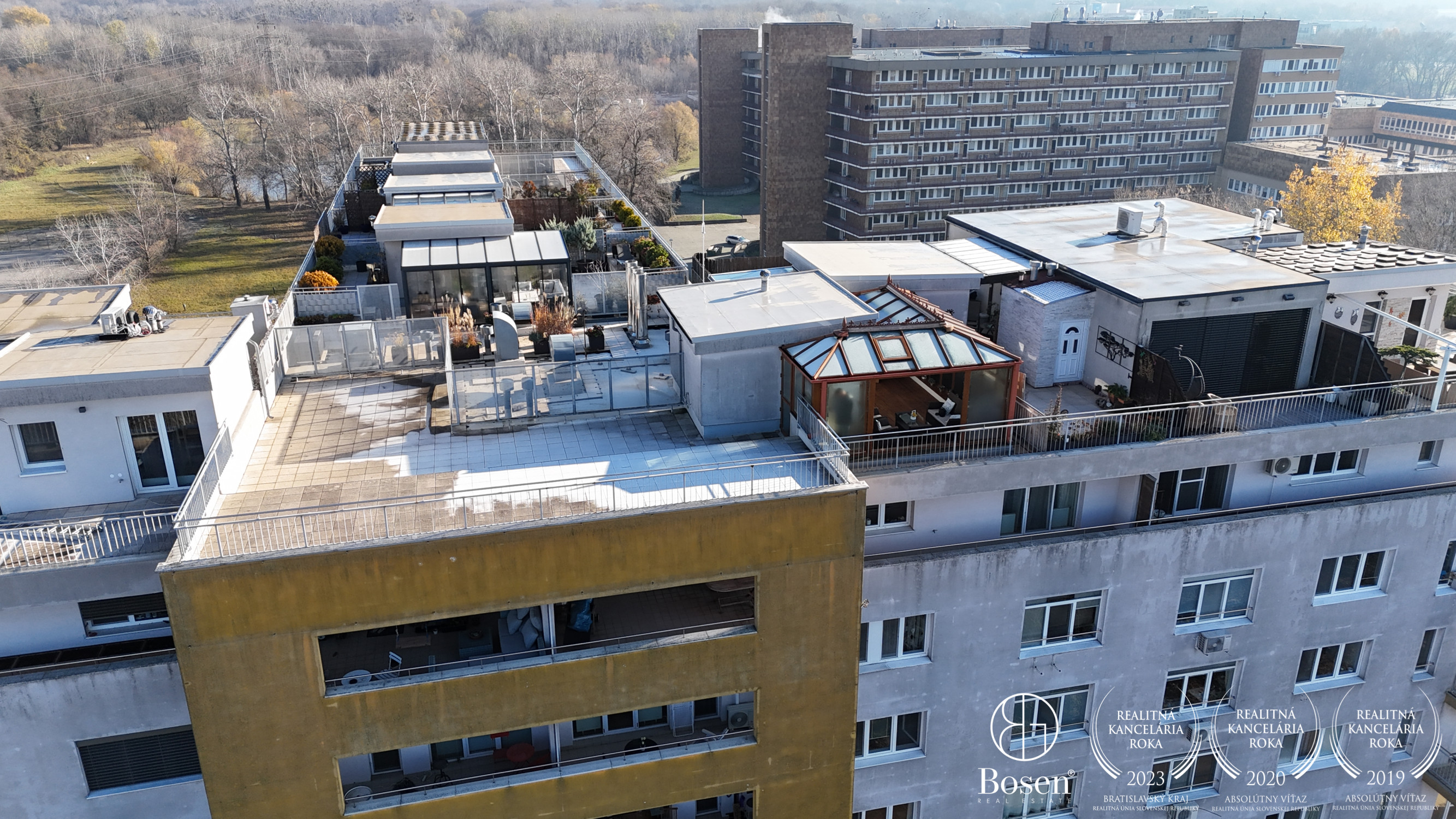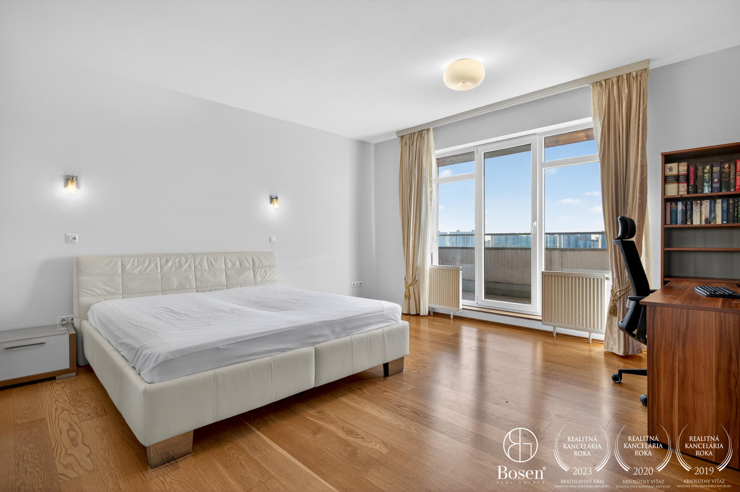 BYT: Celková výmera bytu vrátane príslušenstva bez plochy terás je 145 m2. Byt sa nachádza na 7. poschodí bytového domu s výťahom. K bytu patrí parkovacie miesto v suteréne bytového domu.