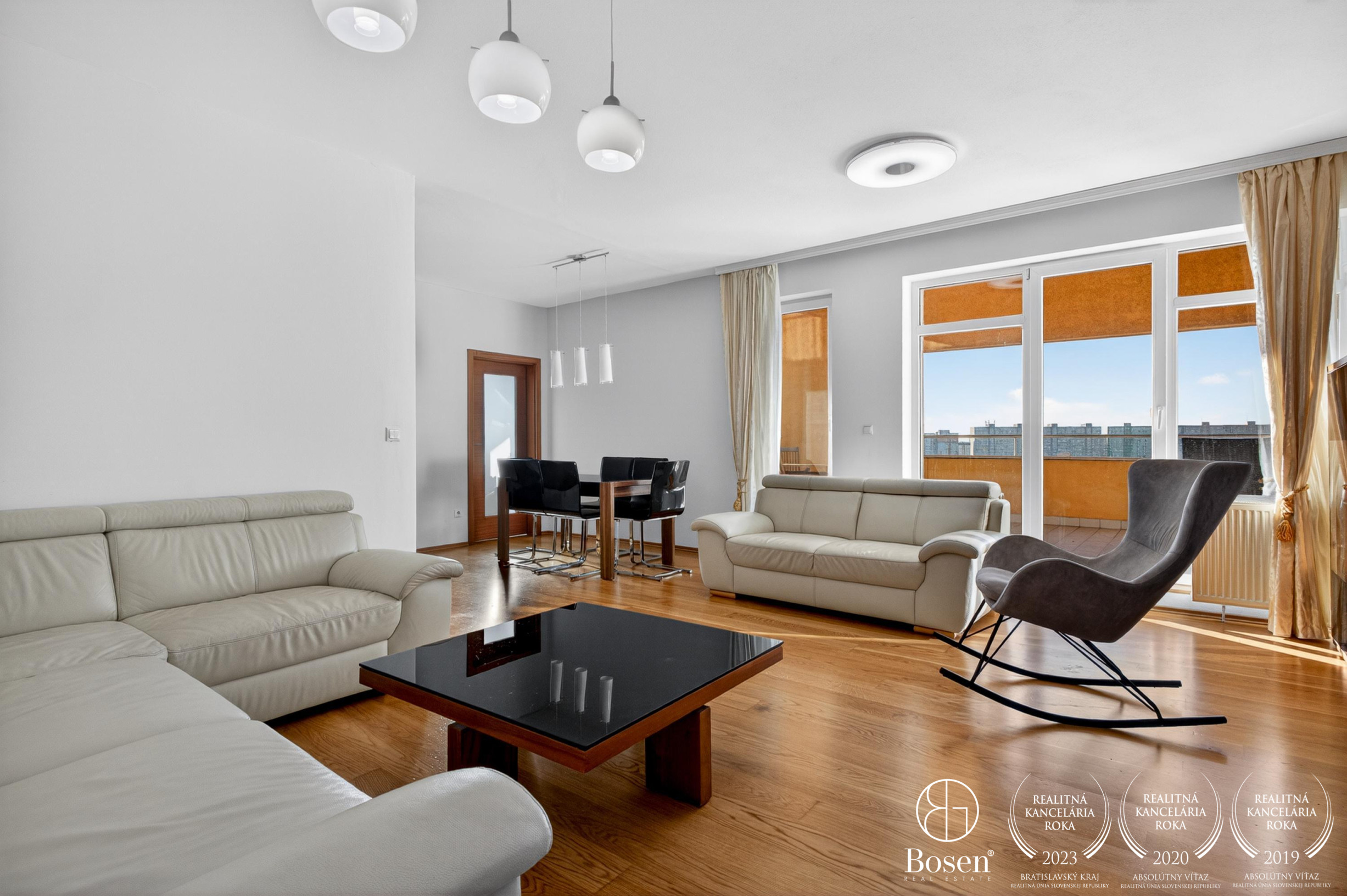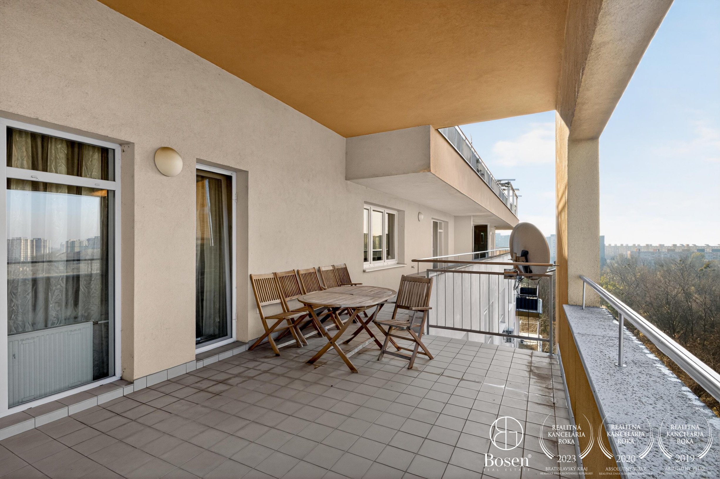 Bosen Group Vám ponúka na prenájom kompletne zariadený 4 izbový byt s dvomi terasami a nádherným výhľadom na Draždiak, zimnou záhradou a parkovacím miestom v bytovom dome vo vyhľadávanej lokalite v Bratislave, mestská časť Petržalka, na ulici Antolská.