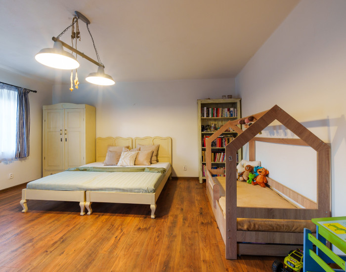 - Prvú časť domu tvorí gánok a vstupná chodba, 2 izby, kuchyňa s jedálňou, WC s kúpeľňou, šatník.