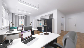 PRIESTOR: Kancelársky priestor o výmere 59,50 m² sa nachádza na 1. poschodí multifunkčnej budovy. Je orientovaný do Panónskej cesty a svojou svetelnosťou poskytuje príjemné pracovné prostredie.