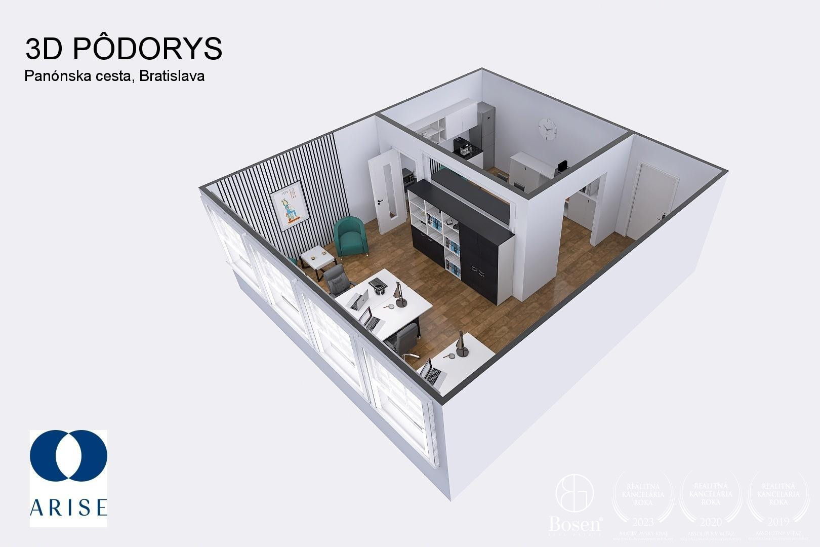 Realitná kancelária Arise, člen siete Bosen Group, Vám ponúka na predaj presvetlený a funkčne riešený kancelársky priestor vo vyhľadávanej lokalite na Panónskej ulici v Petržalke.