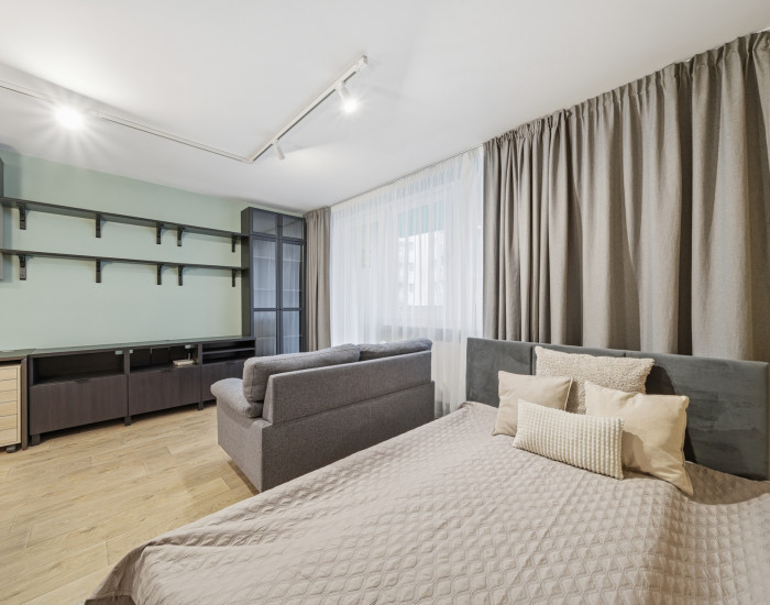 ZARIADENIE: Byt sa prenajíma kompletne ZARIADENÝ. Vo vstupnej chodbe sa nachádza veľká vstavaná skriňa. Byt je rozdelený na kuchynku a izbu, ktoré sú oddelené priečkou. Kuchyňa je vybavená všetkými spotrebičmi (el. varná doska, el. rúra, umývačka, mikrovlnka, chladnička s mrazničkou) a poskytuje aj dostatok odkladacieho priestoru. Pri priečke je stolík s dvomi stoličkami. V izbe sa nachádza posteľ, sedačka a skrinky s poličkami, ktoré poskytujú dostatok úložného miesta. Tiež sa tu nachádza pracovný stôl so stoličkou. Do kúpeľne sa vstupuje z chodby a je vybavená vaňou, umývadlom so skrinkou, toaletou a práčkou. Na balkóne je k dispozícii aj sedenie.