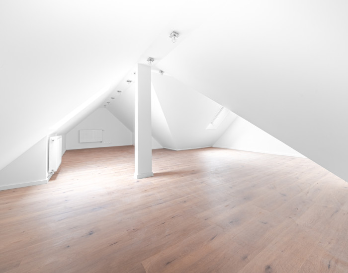 DISPOZÍCIA: V prvom podlaží bytu sa nachádza vstupná chodba, priestranná obývacia izba prepojená s kuchyňou s východom na balkón a kúpeľňa s vaňou a toaletou. Na poschodí je veľká spálňa s dostatkom priestoru na pracovňu.