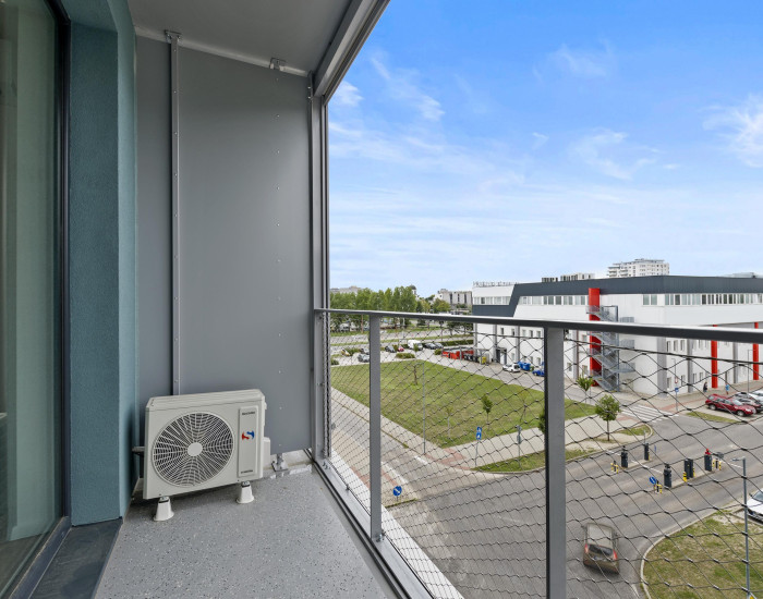 ŠTANDARD: Chodba je zariadená dvoma vysokými skriňami a sedením. Kuchynská linka je kompletne vybavená zabudovanými spotrebičmi. Kuchyňu s obývačkou prepája barový pult s 2 stoličkami. Obývačka je zariadená sedačkou s konferenčným stolíkom a zostavou okolo TV, ktorá je tiež súčasťou zariadenia bytu. Z obývačky je vstup na priestranný balkón. Okná sú vybavené elektrickými exteriérovými žalúziami. Priestor na spanie s dvojposteľou je oddelený uzatvárateľnými posuvnými dverami. Šatník poskytuje dostatok úložného priestoru pre oblečenie a iné predmety. Byt je úplne nový, klimatizovaný, ešte neobývaný a pripravený na okamžité nasťahovanie.