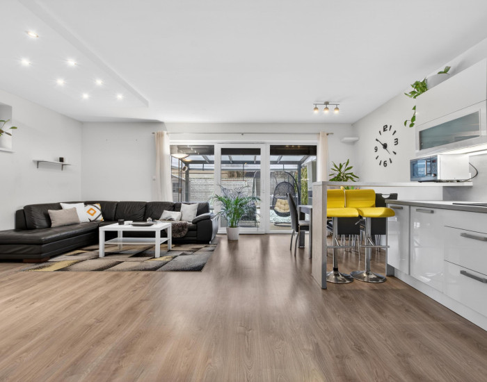 RODINNÝ DOM: novostavba kolaudovaná v roku 2018, samostatne stojaci bungalov s jedným nadzemným podlažím. Zastavaná plocha domu je 116 m2 a podlahová plocha domu je 90,67 m2. Rodinný dom je postavený z kvalitných stavebných materiálov. Obvodové murivo a vnútorné priečky YTONG, strešná krytina - betónová škridla, zateplenie rodinného domu - obvodové murivo polystyrén 15 cm, strecha minerálna vlna, teplovodné plynové podlahové kúrenie, plynový kotol, plastové okná s izolačným 3 sklom, plastové vstupné dvere, vonkajšie žalúzie, krb, klimatizácia, kamerový systém, odkladací priestor na povale, oplotenie, krytá terasa, hliníková pergola, záhradný domček, automatické závlahy, vonkajšie parkovacie státia. Rodinný dom je napojený na tieto inžinierske siete: elektrika, kanalizácia, voda, plyn, optický internet.