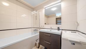 BYT: sa nachádza na prvom poschodí, má výmeru 58m2, disponuje jednou samostatnou spálňou, z ktorej je východ na balkón a do kúpeľne, kuchyňou prepojenou s obývačkou, z ktorej je ďalší výstup na balkón a predsieňou. Byt je klimatizovaný, má bezpečnostné vstupné dvere a je zariadený vrátane práčky. K bytu patrí pivnica v suteréne.