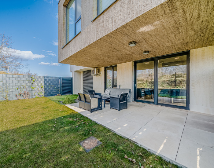 BYT: Byt má výmeru 67 m2 a predzáhradka 67 m2. Nachádza sa na prízemí novostavby bytového domu. V byte je vlastný kotol na ohrev vody, elektrické podlahové kúrenie, elektrické exteriérové žalúzie, klimatizácia. Prístup na predzáhradku je vynikajúco riešený bočnou bráničkou z parkoviska. V záhradke sú nasadené okrasné kry a trávnik je napojený na závlahu. Súčasťou vybavenia je aj kosačka.