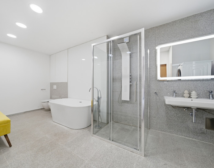 BYT: Celková výmera bytu je 114,79 m². Nachádza sa na prízemí zo 4 v bytovom dome. Byt disponuje podlahovým teplovodným kúrením, dvomi klimatizačnými jednotkami, vlastným kotlom na vykurovanie aj ohrev teplej vody a bezpečnostným alarmom. Nehnuteľnosť je pripravená na okamžité využitie na krátkodobý prenájom (Airbnb) alebo je vďaka svojej dispozícii ideálna na podnikateľské účely, napríklad ako sídlo firmy, kozmetický salón či iné služby.