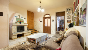 Prízemie pozostáva zo vstupnej predsiene, samostatného WC, kuchyne, priestrannej obývacej izby s krbom na drevo a priamym východom na krytú terasu, jednej izby a garáže.