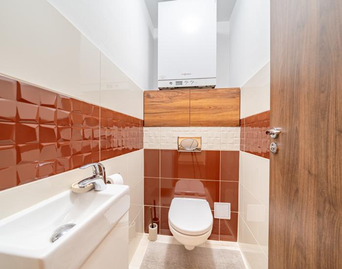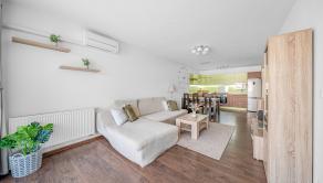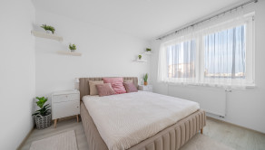 DISPOZÍCIA : Byt sa nachádza na 1. nadzemnom podlaží, pozostáva z priestrannej vstupnej chodby, presvetlenej obývacej izby prepojenej s kuchyňou a jedálenskou časťou, hlavnej spálne, samostatnej izby vhodnej ako detská izba alebo pracovňa, kúpeľne, samostatného WC a dostatku úložných priestorov. Byt má rozlohu 78,3 m2 z čoho loggia tvorí 5,3 m2.