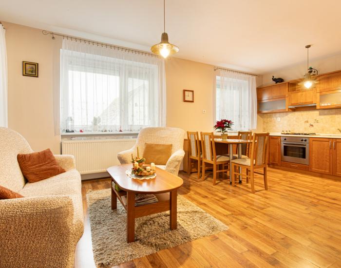 Kompletne podpivničený rodinný dom disponuje praktickou dispozíciou s troma (3) samostatnými a svetlými spálňami, ktoré poskytujú dostatok priestoru aj pre rodinu s deťmi. Súčasťou domu je priestranná obývacia izba, samostatná kuchyňa s jedálenským priestorom a samostatnou komorou, kúpeľňa s vaňou a sprchovým kútom a WC. Rodinný dom poskytuje dostatok úložného priestoru. Kompletné podpivničenie umožňuje budúcim majiteľom vytvoriť dvojgeneračný rodinný dom.