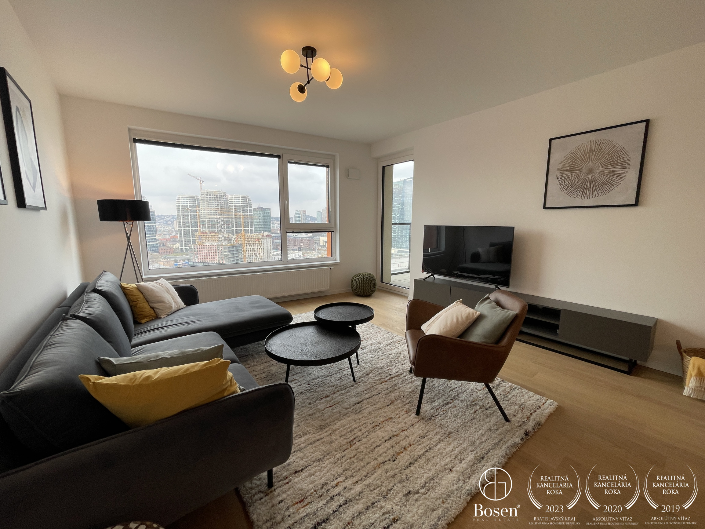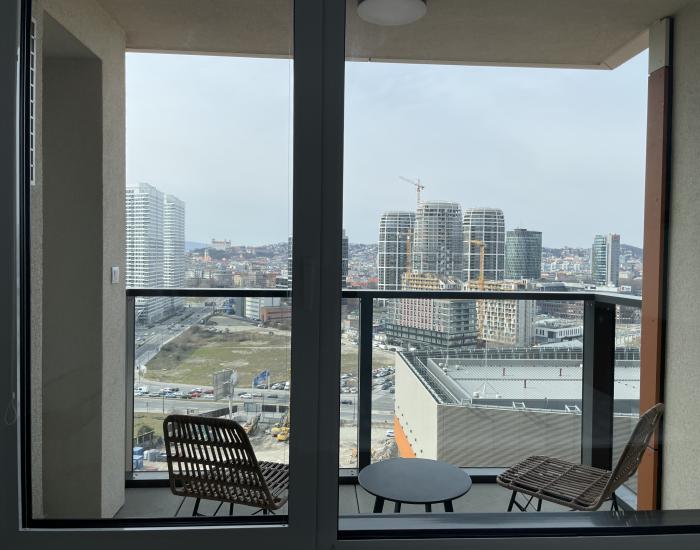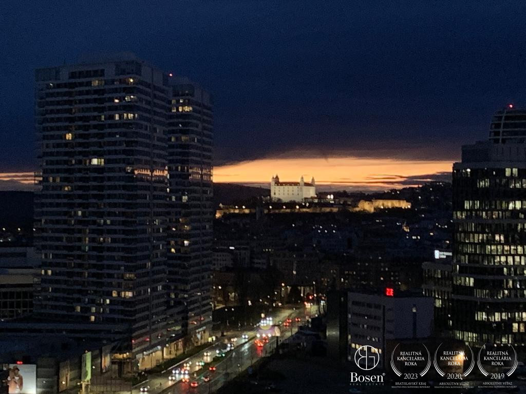 BYT: Výmera bytu je 60 m2 vrátane loggie 5 m2. Kompletne zariadený byt so západnou orientáciou a výhľadom na nový Downtown. Nachádza sa na 17. poschodí.