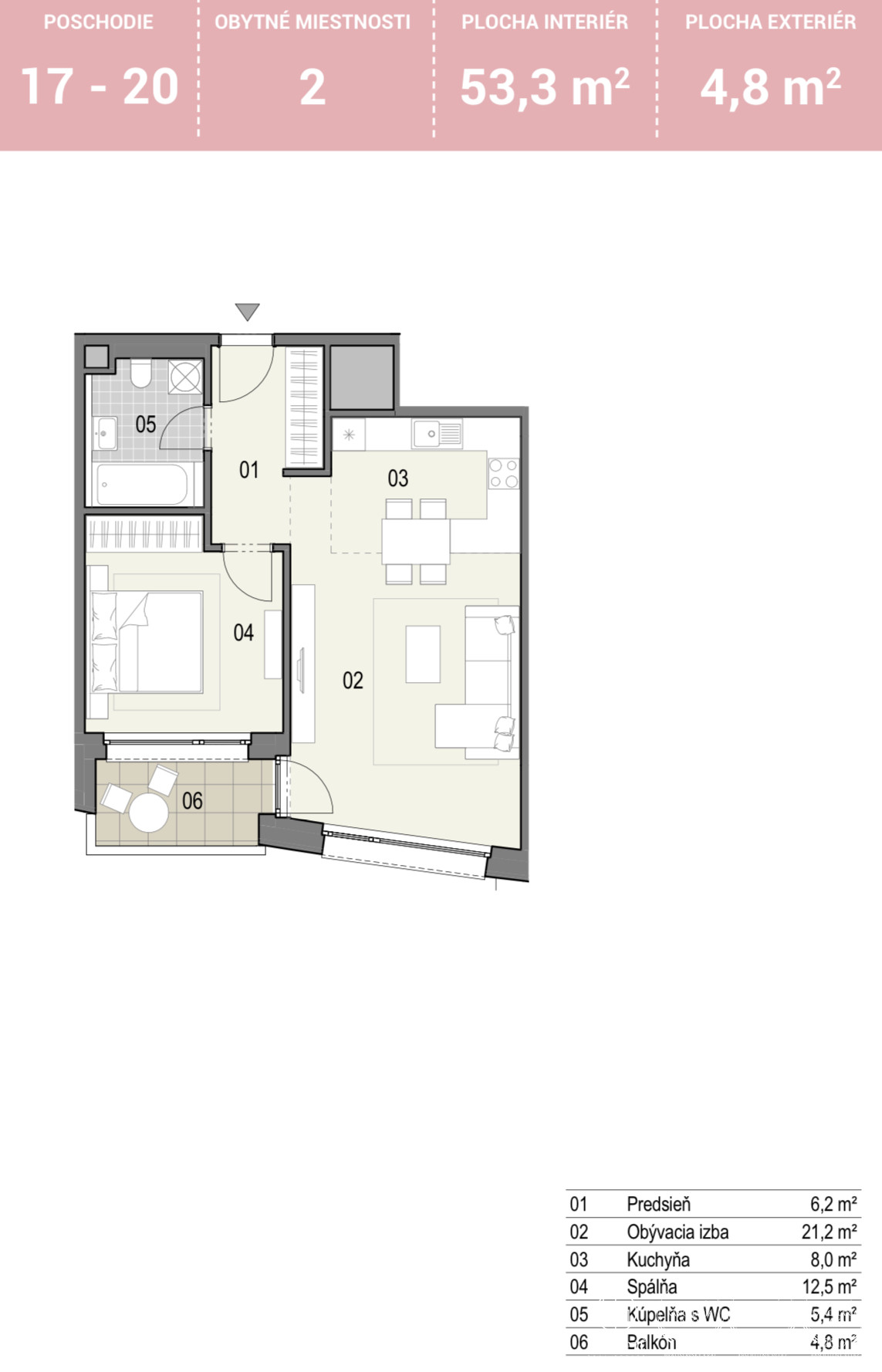 DISPOZÍCIA: vstupná hala so skriňou, kúpeľňa s WC, spálňa, obývacia izba s kuchyňou a výstupom na loggiu
