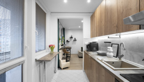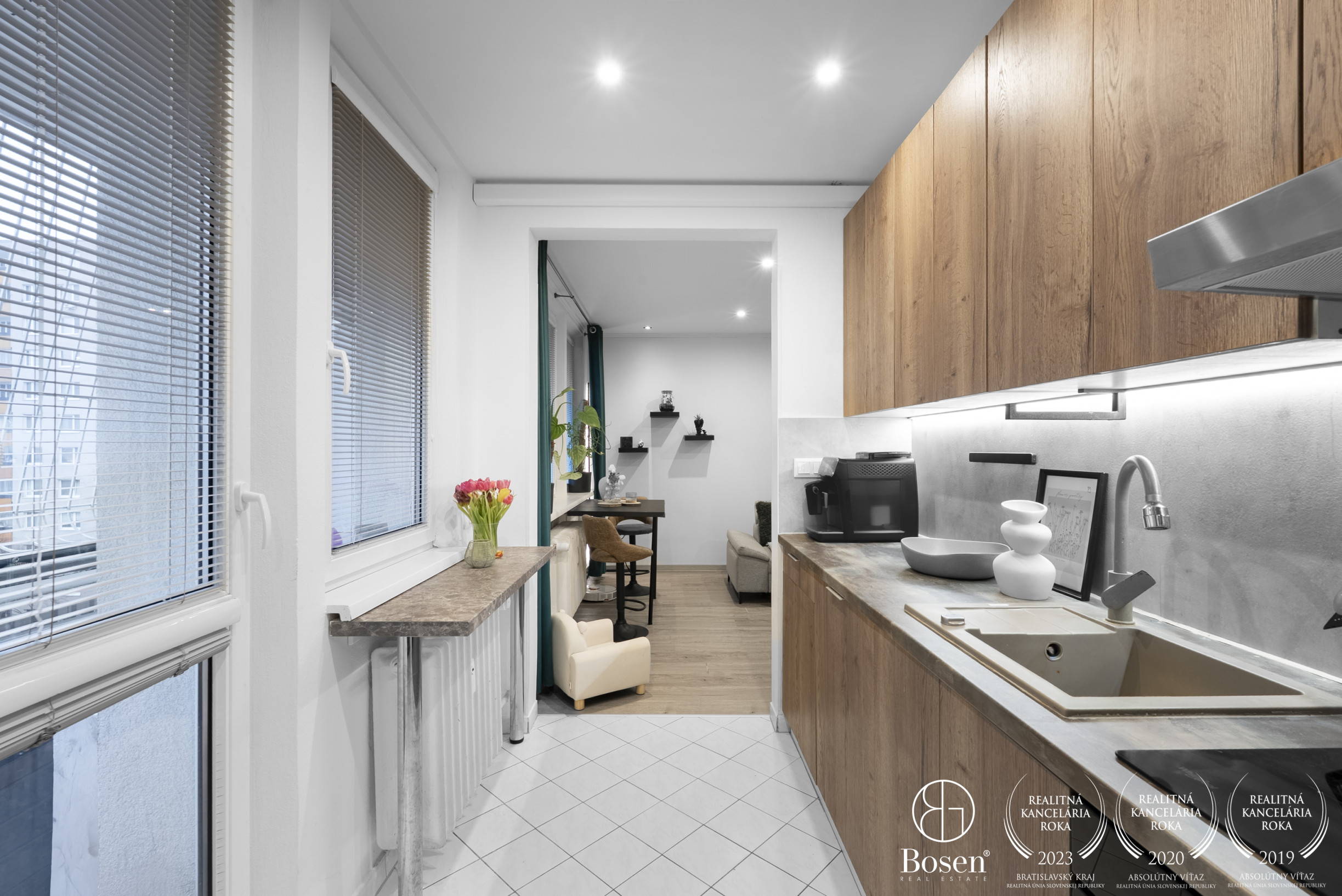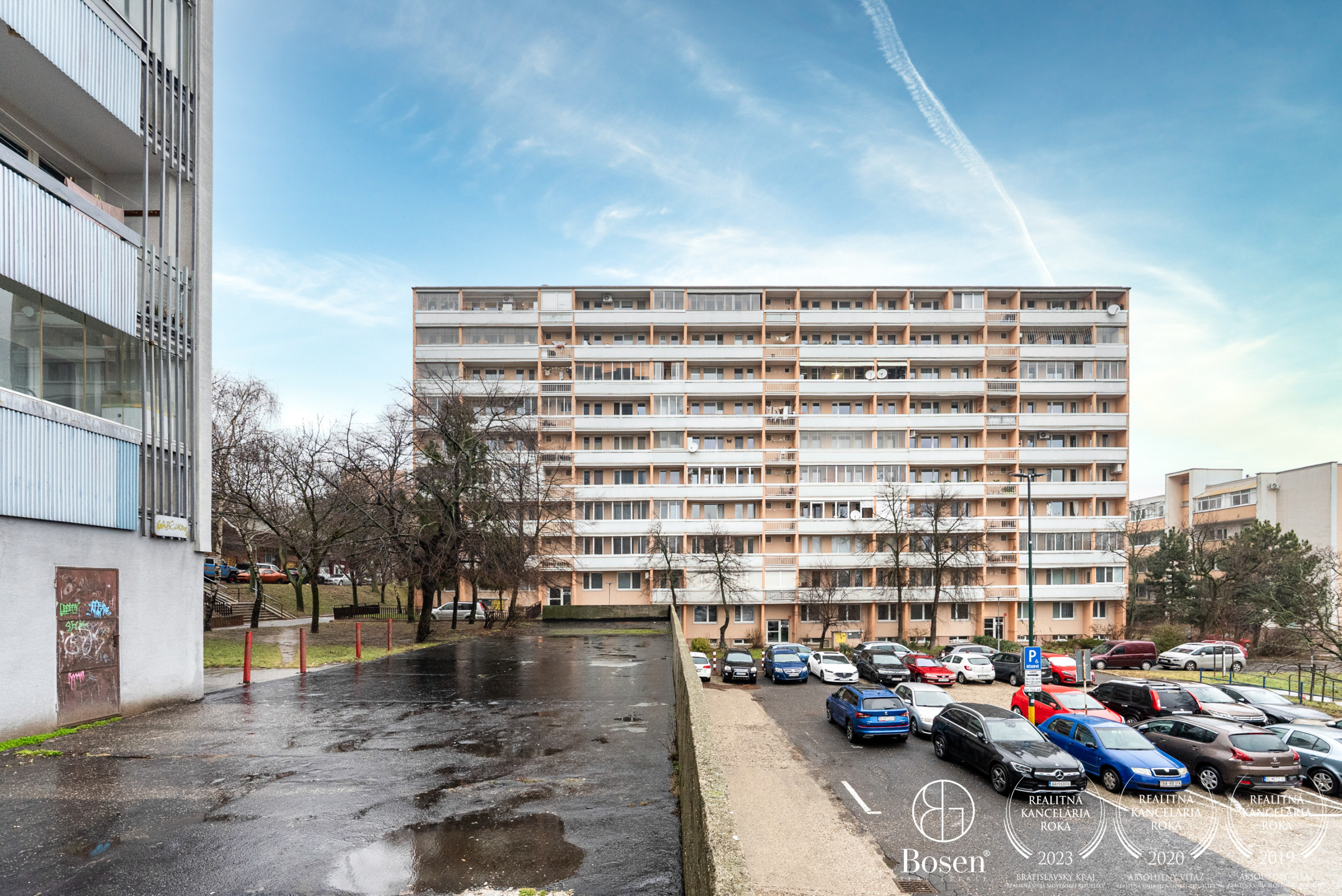Real estate agency BOSEN Group brings you an opportunity to live in a modern, stylishly renovated 2-bedroom apartment that combines urban comfort with the peaceful atmosphere of a green neighborhood. The apartment is located on Gábčíkova Street in the popular Bratislava – Karlova Ves district, on the top 8th floor, which provides plenty of natural light, privacy, and views. Thanks to a complete renovation, custom-made furniture, and a dedicated parking space, it offers comfortable living without any additional investment.