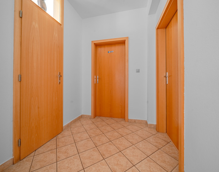 DISPOZÍCIA:Byt sa nachádza na 1. vyvýšenom podlažía má celkovú výmeru 90 m². Pozostáva z priestrannej vstupnej chodby, samostatnej kuchyne s jedálenským kútom a špajzou, presvetlenej obývacej izby s výstupom na loggiu, hlavnej spálne, samostatnej izby vhodnej ako detská izba alebo pracovňa, kúpeľne, samostatného WC a dostatku úložných priestorov Byt disponuje dvomi loggiami – jedna s výmerou 7 m² a druhá 3 m².