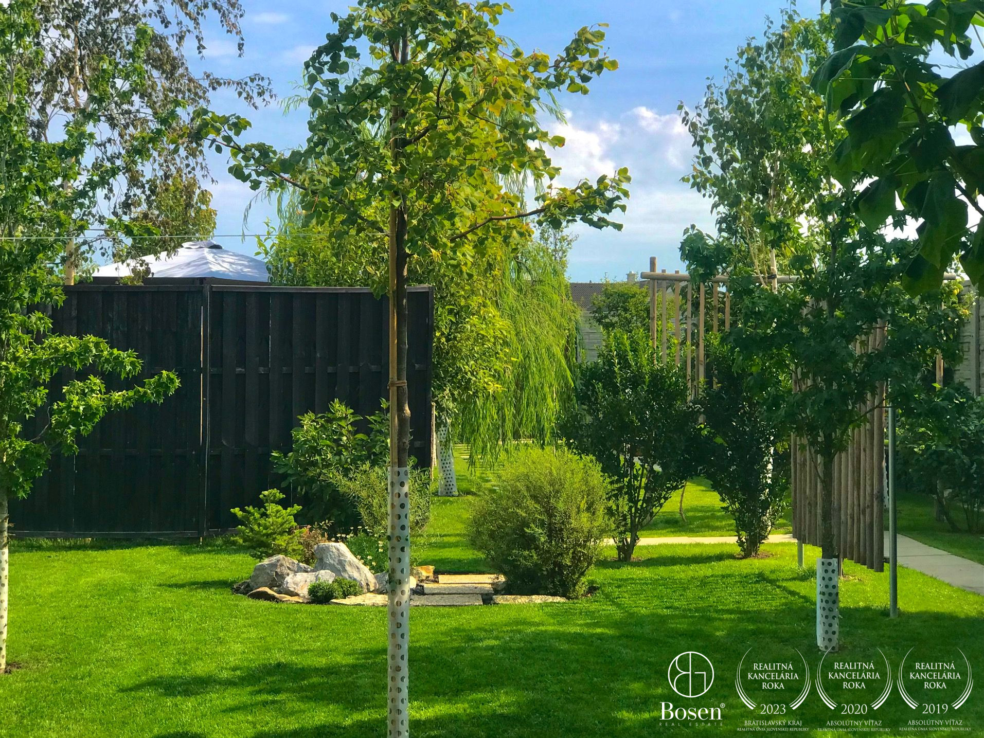 BYT: Byt sa nachádza v novostavbe samostatného moderného RD, kde sú ďalšie možnosti prístavby, vybudovanie bazéna, či miesto na pestovanie vlastnej bio zeleniny. Byt má výmeru 83m² a pozostáva z 3 obytných izieb a príslušenstva, ktorým je: kuchyňa, predsieň, kúpeľňa a samostatné WC. K bytu patrí terasa o výmere 17,5 m2. Hlavným benefitom tohto bytu je krásna záhrada o výmere 419m2. Výstup zo záhrady je do miestneho EKO parku, cez ktorý sa deti dostanú bezpečne do blízkej novovybudovanej modernej škôlky a školy. Každý detail tu dýcha pokojom a prepojením s prírodou.