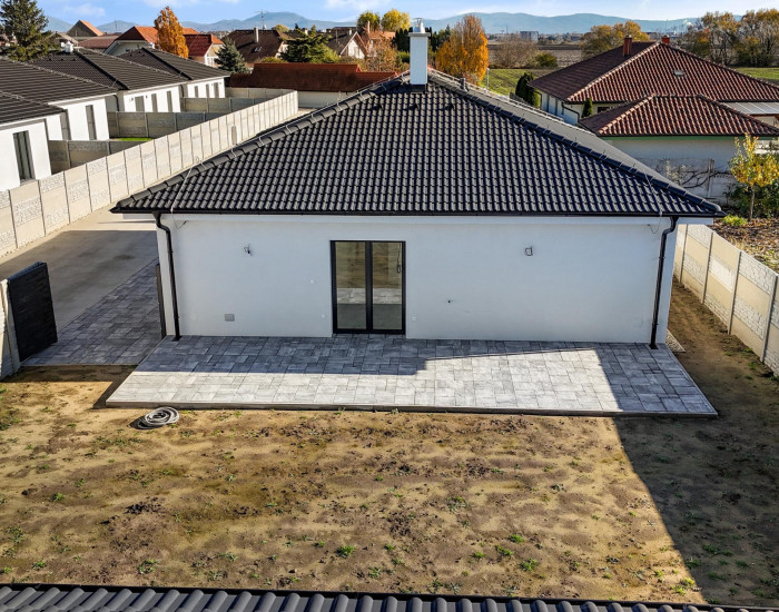 RODINNÝ DOM: Dispozične veľmi dobre riešený samostatne stojaci bungalov bol postavený v roku 2025 a aktuálne prebieha kolaudácia tohto rodinného domu. Dom je postavený z kvalitných materiálov. Obvodové murivo a vnútorné priečky pálená tehla, plastové okná s izolačným 3 sklom, betónová škridla, zateplenie 20 cm polystyrén odvodové murivo, strecha je zateplená striekanou izoláciou. Laminátové parkety, dlažba, obklad, sanita, interiérové dvere so zárubňami, kuchynská linka bez spotrebičov. Predpríprava na klimatizáciu a vonkajšie elektrické žalúzie.