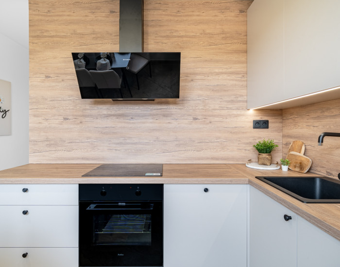 ZARIADENIE: Byt sa predáva kompletne zariadený a je pripravený na okamžité nasťahovanie. Obývacia izba je vybavená štýlovou sedačkou, konferenčným stolíkom, vstavanou nástenou policou, televízorom a stolíkom s kreslom. V spálni sa nachádza manželská posteľ spolu s nočnými stolíkmi, vstavaná skriňa a kozmetický stolík so stoličkou. Druhá spálňa je vybavená skriňou so vstavaným stolíkom a stoličkou, posteľou a nočnými stolíkmi. Posledná izba je vybavená ako praktická pracovňa s pracovným stolom robeným na mieru. Kuchyňa je vybavená jedálenským stolom so stoličkou a kuchynskou linkou robenou na mieru so vstavanými spotrebičmi. Kúpeľňa je vybavená vaňou a umývadlom s úložným priestorom.